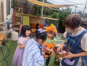 トリックオアトリート♪仮装したいたずらなこどもたちはお菓子をいっぱいゲットしていました!