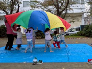 今年度は人数も少なくなり、寂しくなるかと思いましたが、親子競技を増やし、キッズさんも手伝ってくれてアットホームで楽しい運動会になりました。