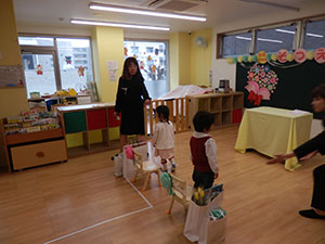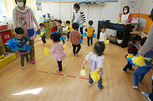 当園では絶対音感や音楽家を育てるものではなく、保育という生活の場を通じて音楽をいう歌やリズムを楽しみながら行うことにより、